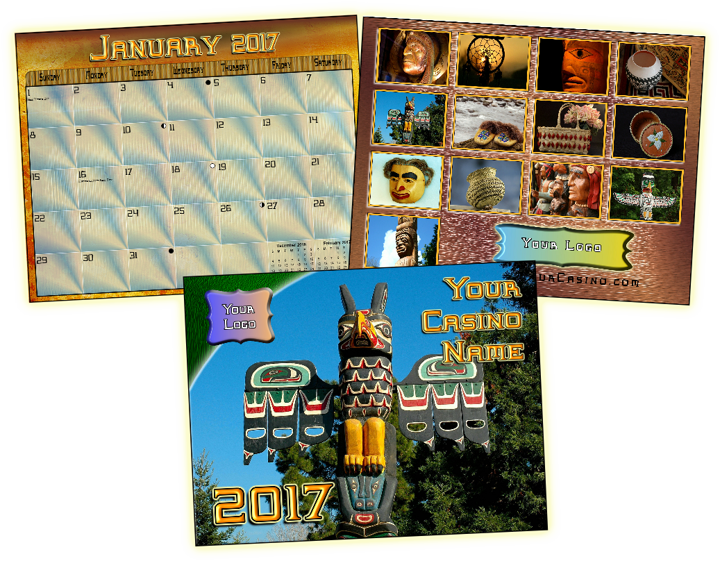 This option provides your casino with not only a great gift for your players and customers, but the process will create a wonderful keepsake for all of your tribal members and friends. The back cover will be designed to your specifications using artist profiles and copy of your choice. These calendars will truly be a collectors items. Find all the details Here.